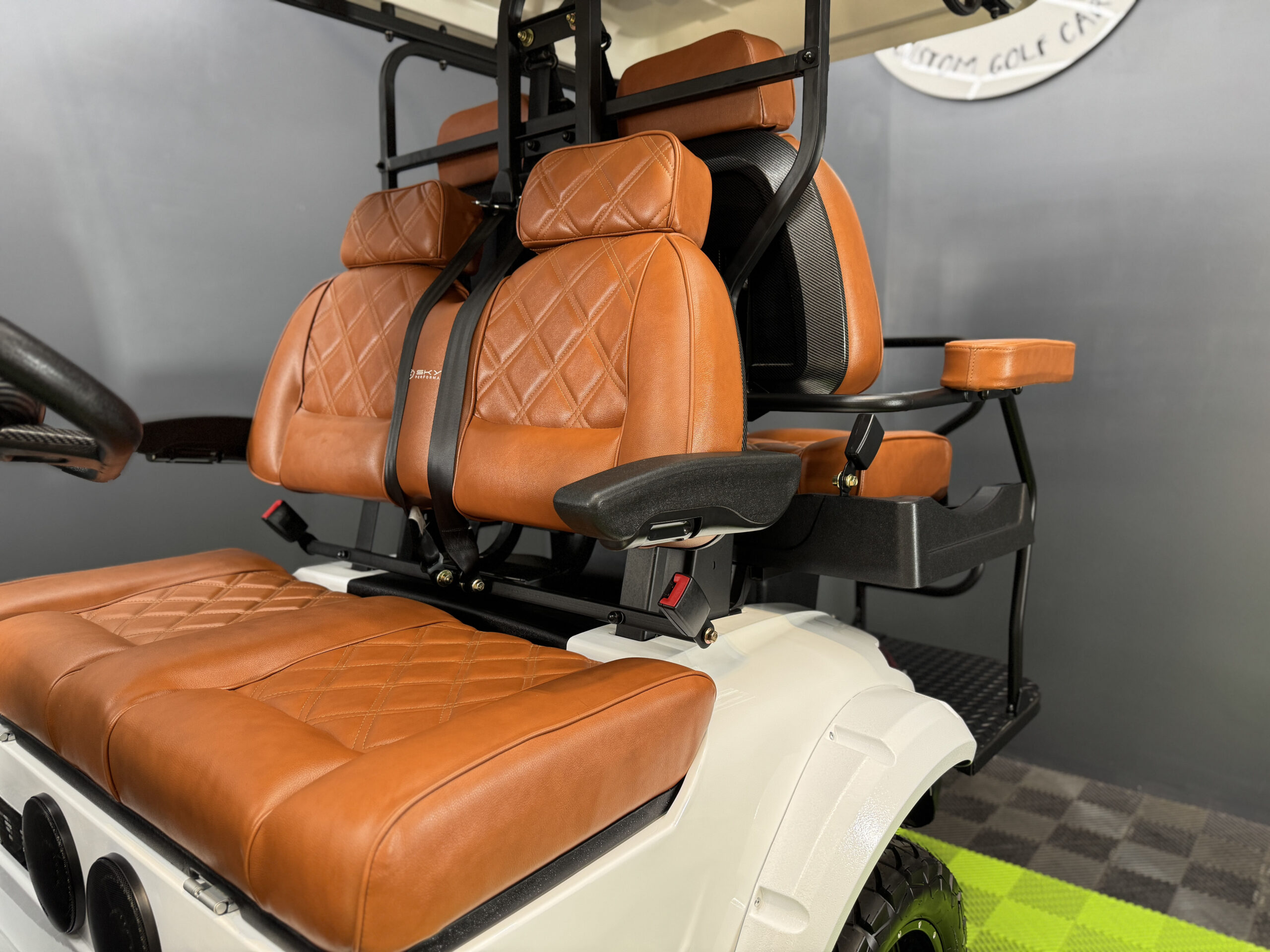 - New upgraded “club style” leather seat with diamond stitch all around