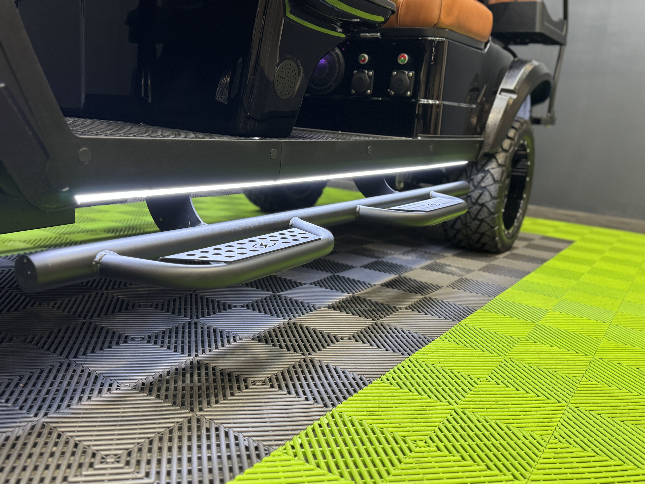 • New bluetooth with 4 LED speakers mounted under dash and behind seats